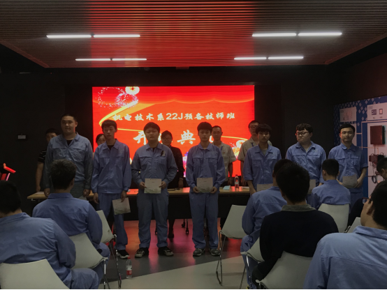 7月8日上午新一届预备技师开班典礼顺利举行,机电技术系主任张琳娜、副主任高德龙、各教研室主任及综合主管参加了开班典礼。