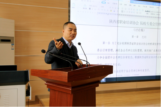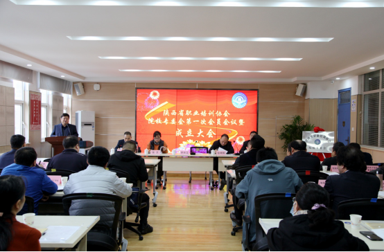 冯小平副院长介绍了参会代表和会议议程;陕西省职业协会副会长张明军宣读了院校专委会成立的决定;陕西省职业培训协会会长李长江、陕西省技工院校指导中心张艺共同进行揭牌仪式,宣布陕西省职业培训协会院校专委会正式成立。