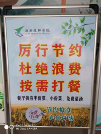 我们还注意到,在搞好常规管理工作的同时,负责学院餐厅管理的老师们还不忘服务创新。为响应党中央厉行节约,杜绝浪费的号召,学院二楼餐厅在新学期推出了按需打餐的服务项目,学生可以按需购买半份菜,小份菜用实际行动支持光盘行动,节约粮食。