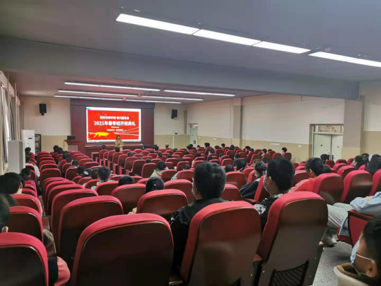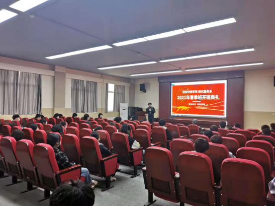 上午九点,现代服务系2021年春季班全体学生在班主任的带领下,秩序井然地走进C301会议厅,参加开班典礼。