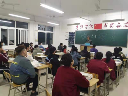 这个好的习惯进而延伸到教室、食堂。离开教室时,值日生会按照宿舍的整理规范对教室进行清洁、整顿。桌椅、书籍、清洁用具都会按标摆放。而课前的预备铃一响,同学们会自觉把手机放入手机袋。就餐时,学生会在教官整顿后,有序进入餐厅就餐。好的学习生活习惯带动了学风,确保了上课质量,很多班级也开始渐渐形成了良好的教学氛围。