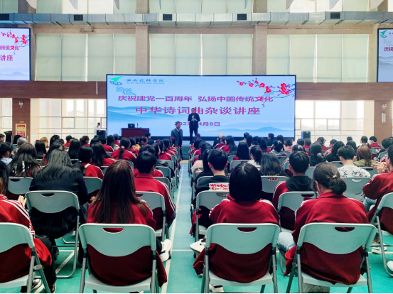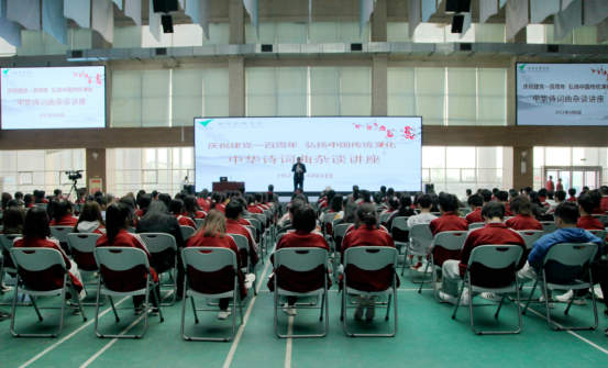 为弘扬中华民族传统文化,全面提高学生的文化素养,丰富学院校园文化,提升社团质量,西安技师学院于4月8日下午在文体活动中心举办“庆祝建党一百周年,弘扬中国传统文化——中华诗词曲杂谈讲座”。