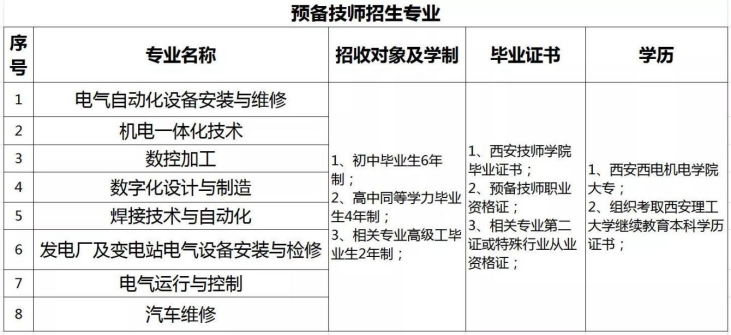据了解,西安技师学院今年计划面向社会招收部分预备技师层次的专业,相关高级工的学生现在就可以咨询报名了,咨询电话:029-33199988。