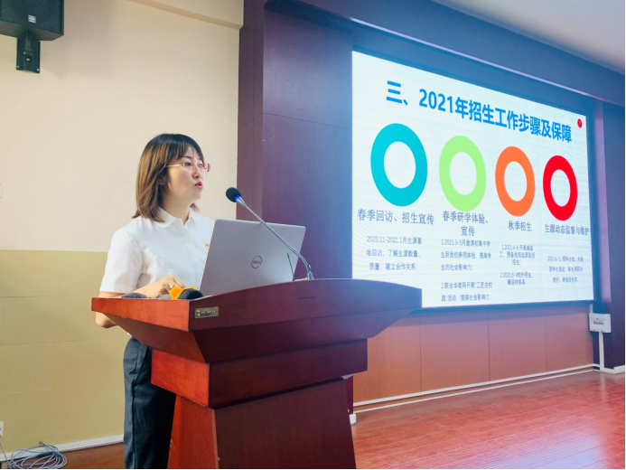 招生与就业服务中心副主任易海英同志对2020年度招生工作进行了总结回顾,对2021年度招生工作实施方案从政策变化、人员安排、区域调整等方面进行深度解读。