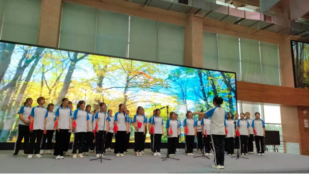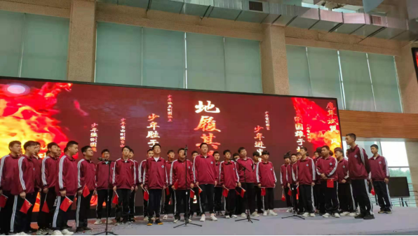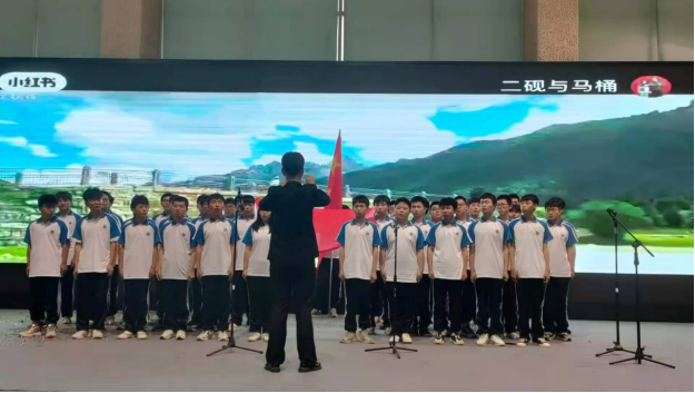 其中,23G学前班同学演唱的《歌唱祖国》声音洪亮、音色优美,同学们挥动着五星红旗,声情并茂的演唱感染了全场的观众一起歌唱;25WG机电6班的《保卫黄河》气势恢宏,教官积极参与指挥,列队整齐,班主任老师在一旁朗诵,为节目增加了震撼的效果;《我和我的祖国》《团结就是力量》《没有共产党就没有新中国》......一首首经典的红色歌曲,铿锵有力、激情洋溢,演绎了百年大党不断进取的伟大历程和带领全国人民奋斗不止的蓬勃朝气,展示了中国人民团结起来的力量征服一切艰难险阻的壮志豪情。经过一番激烈角逐,最终23G学前班夺得本次比赛的第一名。