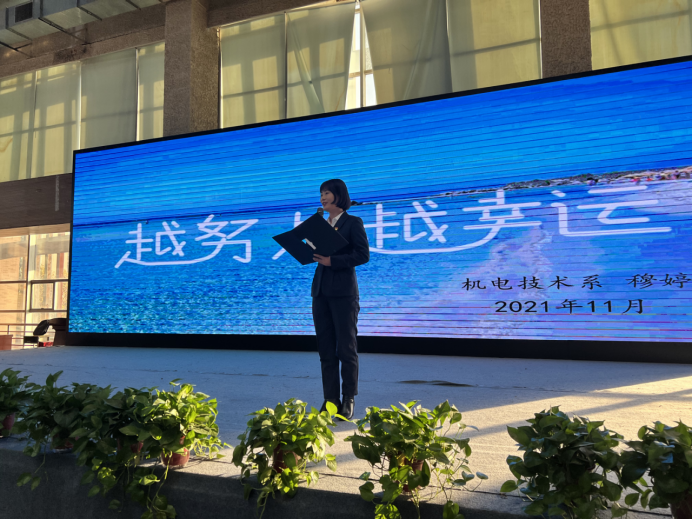 在讲一个故事环节,我院荣获中国西电集团“十大杰出青年”荣誉称号的青年教师穆婷,讲述了自身从学院求学到成为骨干教师的励志事迹,激励了全场观众。培训精益党支部李凯、武振两名党员同志声情并茂的讲述了央企楷模邱军的故事,感人至深,催人泪下,深度还原了为社会奋斗、鞠躬尽瘁的企业劳模形象,为全体师生树立了工作、学习的榜样。