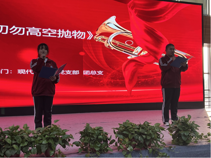 做一次自省环节中,现代服务系青年团员代表田佳乐、郭静就高空抛物等常见的不良行为做了题为《切勿高空抛物 拒绝不良行为》的自省,两位同学从学校发生的实际案例出发,一针见血的指出不良行为带来的危害,呼吁全体同学遵守公德,为创造和谐校园做出自己的贡献。
