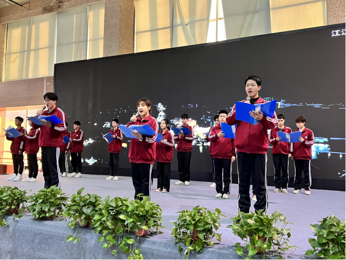 最后,活动在全场人员共唱《没有共产党就没有新中国》的歌声中落下帷幕。本次道德讲堂,适逢建党百年,党史教育正当时,每位党员、团员、学生当以党史学习教育为契机,从党的百年奋斗历程中汲取智慧和力量,不断提升自我修养和理论知识储备,自觉接受一次革命传统教育和思想政治洗礼,筑牢信仰之基,践行初心使命,以为祖国奉献为荣、为人民服务为乐,不断提升自己的道德素质,以昂扬向上的精神状态与国家发展同频共振,用青春书写无愧于时代的华彩篇章。
