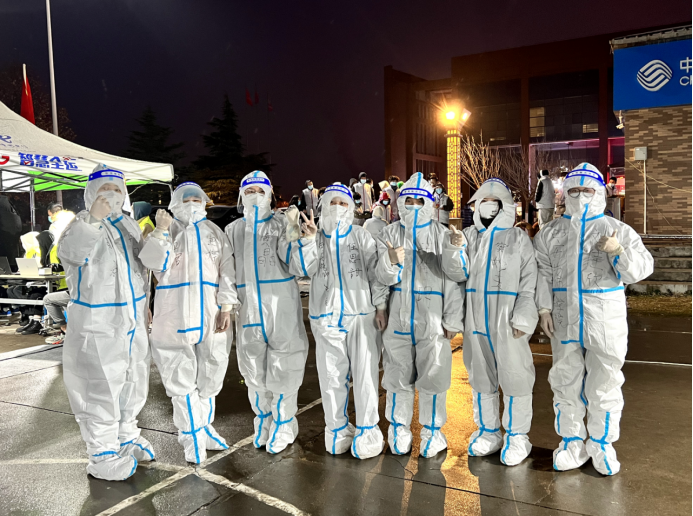 “这么冷的天,护士姐姐们穿着薄薄的防护服,持续好几个小时为同学们做核酸检测,我觉得她们很辛苦,特别感谢她们,正是因为有了她们的冲锋在前,我们才感到很安心,所以我们想用舞蹈表达对她们的谢意”,学前教育专业的几名同学在现场为医护人员精心准备了“感谢仪式”,用舞蹈表达她们的感谢和敬意。身着防护服的“大白”姐姐们也很感谢同学们的理解和支持,鞠躬回礼。虽然天很冷,但大家的互动很温暖,为这个寒冷的天气增添了一份暖意。