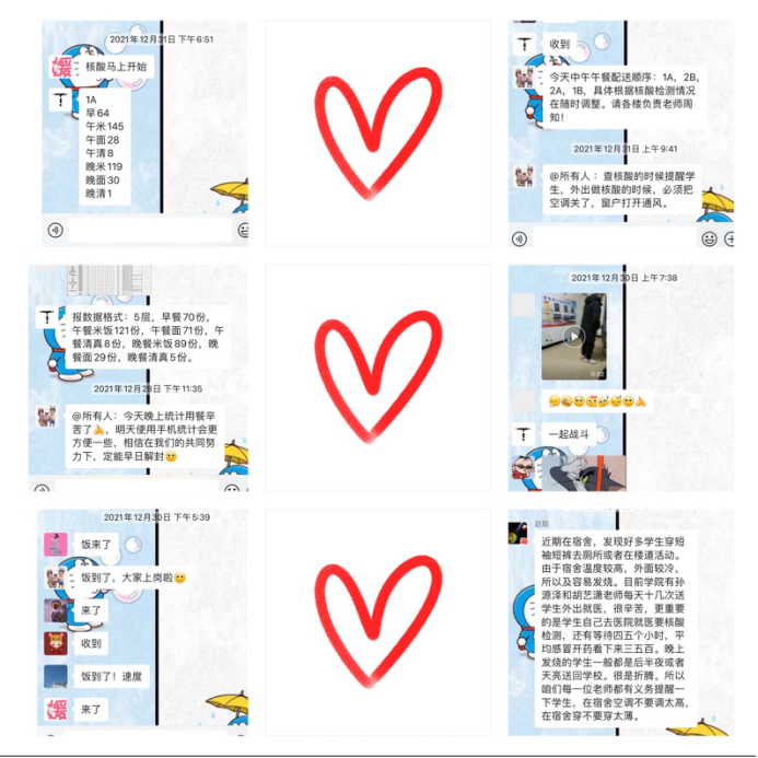 配送餐食、统计人数、监督上课、核酸检测、心理疏导......虽然,学生及楼宇管理专班的老师们每天就干着这些普普通通的小事,但他们一坚持就是一天、两天......一个礼拜,甚至更久。