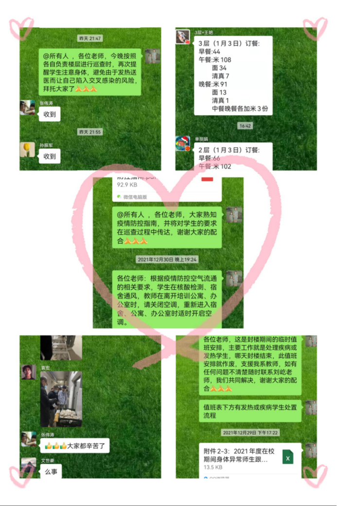 像张璇、宋国亮、单丽娟这样的老师,我们还有很多,他们都是普通人,却用最普通的行为践行着不平凡的使命与责任,“舍小家,为大家”,就像他们的工作群名一样,他们是西安技师学院4000余名师生的“守护者”,他们是西安技师学院“抗疫战队”中的一员,正是因为有了他们的保驾护航,我们的学生才能安心在宿舍学习、生活。