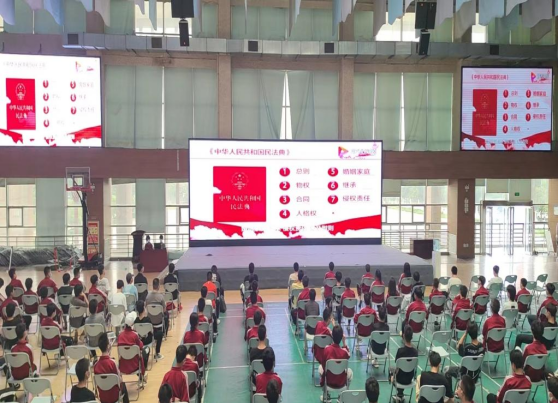 在现场,同学们还观看了《民法典》教育宣传视频,通过《民法典》相关内容的学习,使同学们充分认识到了颁布实施民法典的重大意义及各年龄阶段公民所享有的权利和应承担的责任。