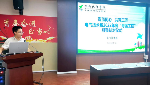 为了充分发挥骨干教师的引领示范作用,帮助新入职教师的快速成长,2022年9月8日,电气技术系在系部新学期工作会议召开之际,举行了2022年度“青蓝工程”师徒结对仪式。系部负责人、全系专、兼职班主任共计三十余人参加结对仪式,仪式由系副主任王博主持。