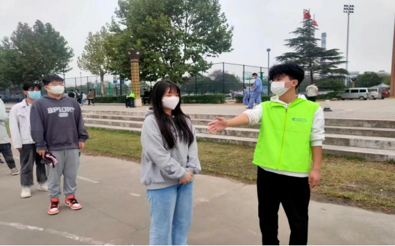 校园执勤期间,学生会志愿者们以身作则,统一着装,以良好的精神面貌在第一时间到达执勤岗位,引导同学们养成不将早餐带入教学区、不随手乱扔垃圾、按照规定佩戴口罩、做核酸检测有序排队等良好生活习惯。