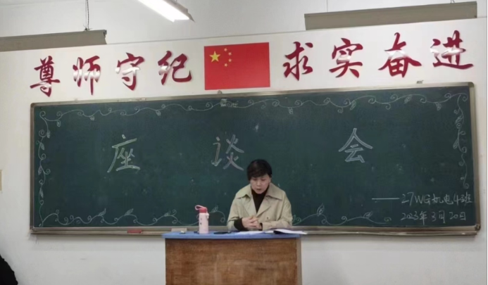 为全面了解班级学生思想状况,解决班级学生在学习生活中的实际困难,营造良好的班级氛围,2023年3月20日,机电技术系27WG机电4班班主任杨苗苗老师利用晚自习时间召开班级座谈会,副班主任曹书源同学及班级全体学生参加。
