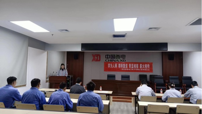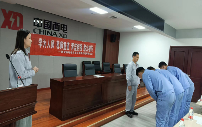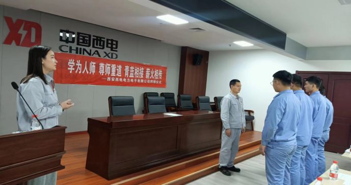 为了不断加强校企合作,积极推进“双元共育、工学一体”的人才培养模式和学徒制建设,形成与现代学徒制相适应的教学管理与运行机制,全面提升培育技能型人才的能力和水平,真正做到岗位成才,为企业培育技能型骨干力量,4月4日上午,西安技师学院与西安西电电力电子有限责任公司(以下简称“西电电力电子”)联合举办“学为人师 尊师重道 青蓝相接 薪火相传”——西电电力电子订单班拜师仪式。