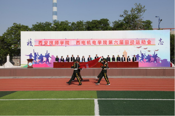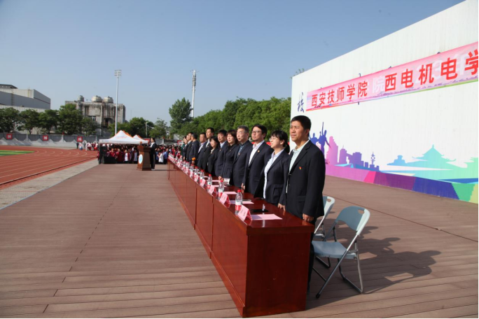 4月27日上午,西安电力机械制造公司机电学院(以下简称西电机电学院)举行第六届田径运动会开幕式。近千名学生身着盛装,手执彩旗,将学院运动场打造成流动的“彩色海洋”。伴随着鲜艳的五星红旗缓缓升起,全场师生激情唱响《义勇军进行曲》,拉开运动会的序幕。学院党政领导班子成员、各教学系和职能部门负责人参加开幕式。开幕式由副院长徐晓英主持。