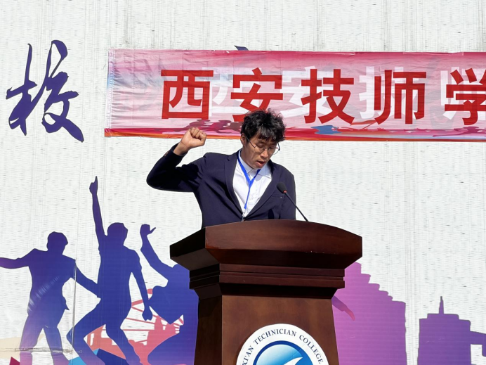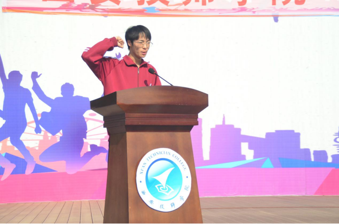 总裁判长席兴俊老师宣布了赛事安排。本届运动会历时一天半,共有来自3个系部的1000余名运动员参赛,将围绕急3项个人项目和2项团体项目展开激烈角逐。