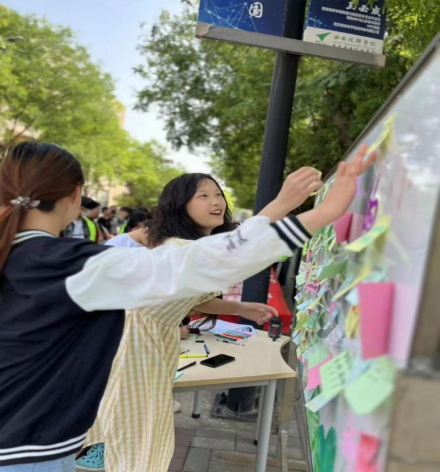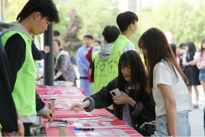 本次环节中,最受欢迎的是“祝福陌生人”。该活动以学生在展板给陌生人留言的方式,帮助学生在沟通中减少误解,不惧表达,悦纳自我。在留言区,每个同学都写下对陌生人的祝福话语,随后进行张贴,大家用一颗真诚的心温暖他人,感受人与人之间的善良和真诚。