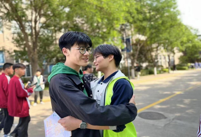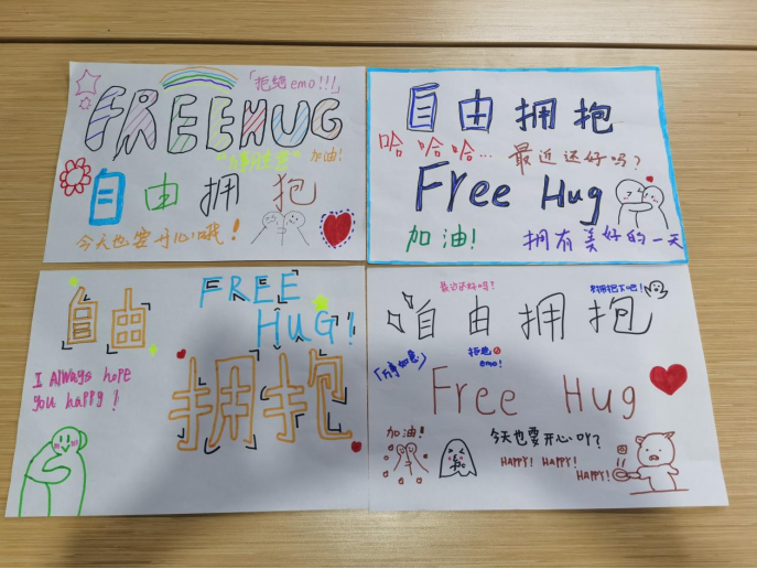 网络将人们的社交圈子无限放大,我们也成为了低头族,忘记了和周围人的交流。“自由拥抱”环节在学院公共区域内开展,从最开始由志愿者对路过的同学们送上一个大大的拥抱,到后来学生之间主动的相互拥抱,真诚的笑容在每一个人脸上绽放。“自由拥抱”,让大家放下自己的面具与疲惫,放开自己的心去与陌生人相拥,不但释放了自己也同样温暖了他人。