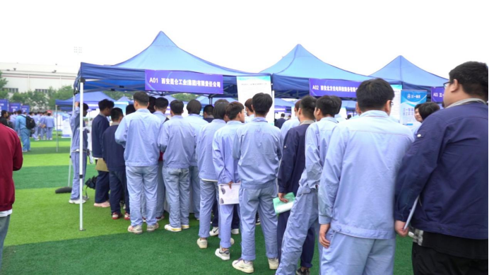 本次校园双选会共有111家企业入驻参会,为学院1000余名毕业生提供了4100个岗位,人岗配置比例达到1:4,参与招聘的单位涵盖陕西延长石油金石钻采设备有限公司、三一智能装备有限公司、上海施耐德配电电器有限公司、西咸新区沣东新城第九幼儿园等国企、民企、三资企业,招聘专业涵盖机电一体化、电气自动化、数控技术、汽车检测与维修、学前教育等19个专业。