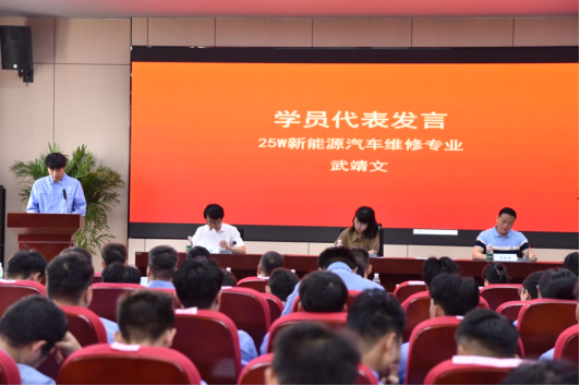 优秀学生代表武靖文同学分享了培训学习期间的收获和感悟。他表示就业培训班不仅让他系统地学习了丰富的理论知识,还进行了大量的操作,通过动手实践操作,将理论和实践进行了良好的衔接。
