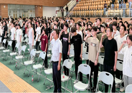 西安市强制隔离戒毒所岳警官带领现场全体师生举行“远离毒品,珍爱生命”的集体宣誓。铿锵有力的誓言震撼人心,表达了学院青年学子抵制毒品侵害的决心。随后,各系学生代表在宣传横幅签名,并观看禁毒展板、毒品模型。
