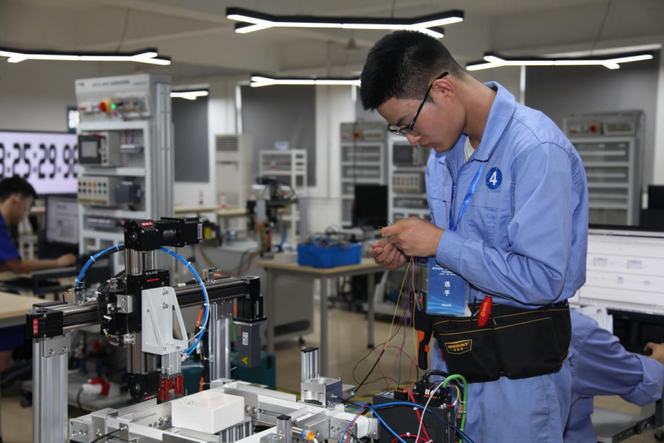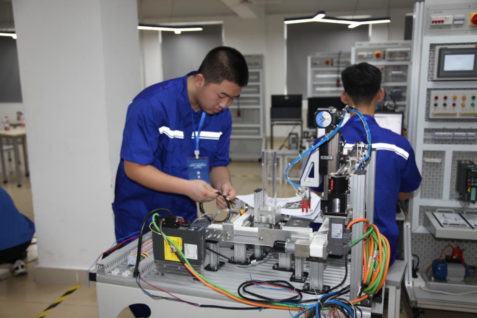 机电一体化赛项则更加注重选手们的团队协作和综合技能。参赛队伍由两人组成,他们需要共同完成机械系统的安装调试、电气控制系统的设计与编程以及设备的整体运行优化等任务。比赛过程中,选手们分工明确、配合默契,一边紧张地操作着设备,一边密切关注着数据的变化,不断调整优化方案,力求达到最佳效果。这种团队合作的精神和综合能力的展现,正是现代制造业对高素质技能人才的迫切需求。