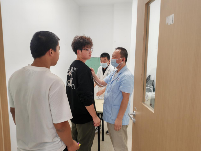 体检现场医护人员则以高度的责任感和使命感,全身心投入到工作中去。他们身着洁白的工作服,佩戴着专业的医疗器具,以严谨的态度和精湛的技术为每一位学生认真进行检查。