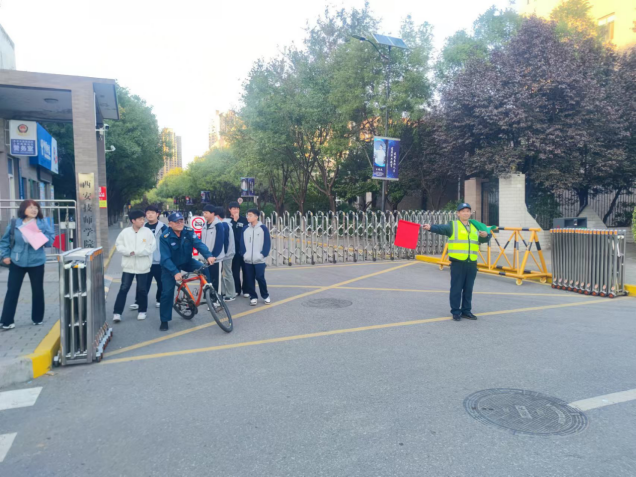 在日常交通疏导中,工作人员与志愿者无惧复杂路况与恶劣天气,始终坚守岗位,保障师生安全。通过共同努力,中门交通秩序井然,学生交通安全意识显著提高。