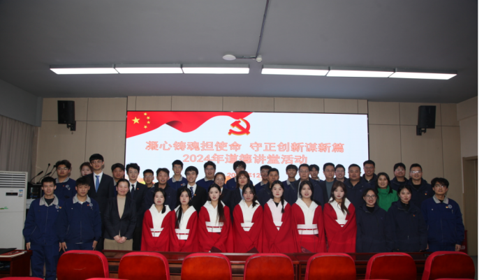 为深化和巩固学院精神文明建设成果,深入学习贯彻党的二十届三中全会精神,积极培育和践行社会主义核心价值观,推进新时代广大师生思想道德建设,12月16日下午,学院举办了主题为“凝心铸魂担使命 守正创新谋新篇”的道德讲堂活动。学院党委副书记、纪委书记程智平,部分职能部门与教学系负责人,教工代表及团青代表参加了此次活动。
