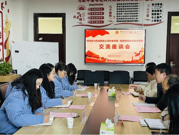 在新时代“大思政”教育理念的引领下,为更好地对标高职院校,进一步深化高校间思想政治教育工作的交流与合作,日前,西安电力机械制造公司机电学院(以下简称西电机电学院)思政与公共课教学部骨干教师在副主任韩璟的带领下前往陕西财经职业技术学院马克思主义学院交流学习。此次活动受到了双方学院的高度重视,陕西财经职业技术学院马克思主义学院院长许朝辉及各教研室主任热情接待了西电机电学院一行教师。