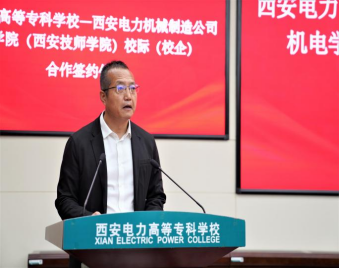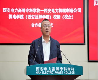 3月14日,为深化职业教育区域及行业校际合作,西安电力机械制造公司机电学院(简称西电机电学院)与西安电力高等专科学校签署了校际合作协议。国网陕西省电力有限公司组织部主任王旭、中国西电集团有限公司人力资源部部长冯红彦及相关处室负责人应邀参加,西电机电学院党委书记、院长冯小平,副院长张大宁、徐晓英,西安电力高等专科学校校长、党委副书记王峰,党委书记、副校长曹远,副校长李建兴、梁晓鹏出席仪式,两校相关部门负责人及师生代表参加了仪式,仪式由西安电力高等专科学校副校长李建兴主持。