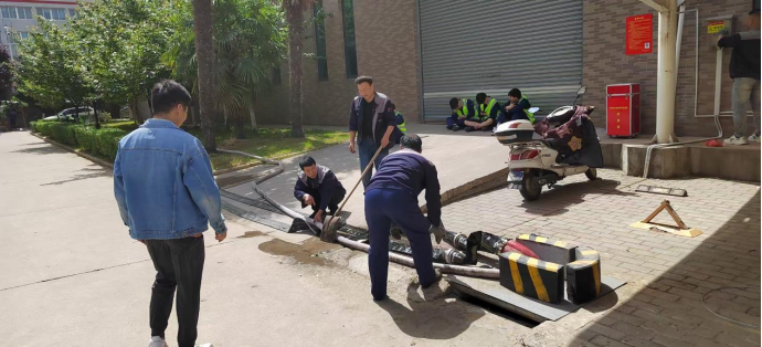 演练中,应急值班人员发现“汛情”后迅速上报,应急指挥部立即启动预案。抢险救援组火速关闭积水区域非应急电源,启动排水泵、打开排污井盖,并在中门处堆砌隔水砂袋墙;警戒疏散组同步行动,引导车棚车主挪车、设置安全警戒线,有序组织实训车间学生撤离并断电;后勤保障组及时调配防汛物资,并做好汛后清洁准备。整个过程紧张有序,各环节衔接紧密,仅1小时便完成“险情”处置,全面检验了应急预案的科学性与可操作性。
