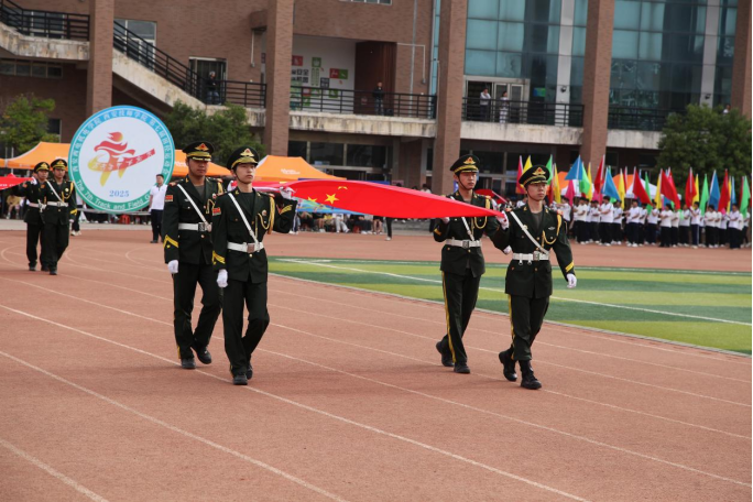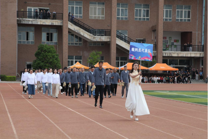 开幕式上,春风点燃热血,赛道见证锋芒。国旗校旗护卫队、会徽队、彩旗方队,各系学生代表方队、裁判员代表队依次迈着整齐划一的步伐,喊着嘹亮口号走过主席台。他们的每一步都传递着“青春逐梦赛场,体育点亮未来”的坚定信念,展现出“跑赢青春,越过山海,我的主场我主宰”的自信豪迈。