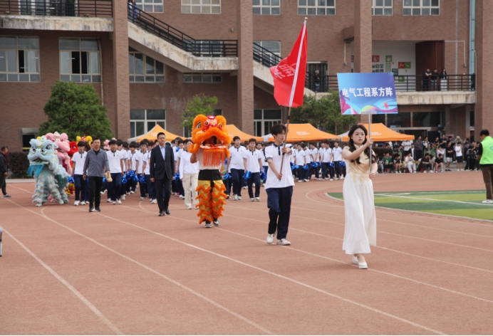 电气工程系学生方阵别出心裁,把运动场化作巨型电磁场,红色跑道上疾驰的身影仿若定向移动的电荷,象征着青年学子的热血正为智能制造时代充电。