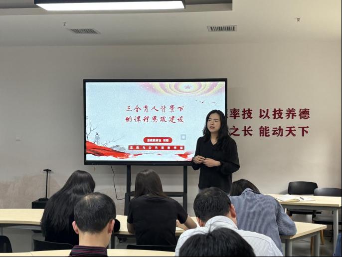 思政教研室主任刘薇解读了《高等学校课程思政建设指导纲要》,结合学院人才培养目标,表示课程思政绝非简单“课程 + 思政”,而是要在专业教学中自然融入家国情怀、职业精神等元素,让课堂成为铸魂主阵地。她强调,教师应兼具“经师”“人师”双重角色,以“如盐化水” 的方式将思政教育贯穿教学全程。