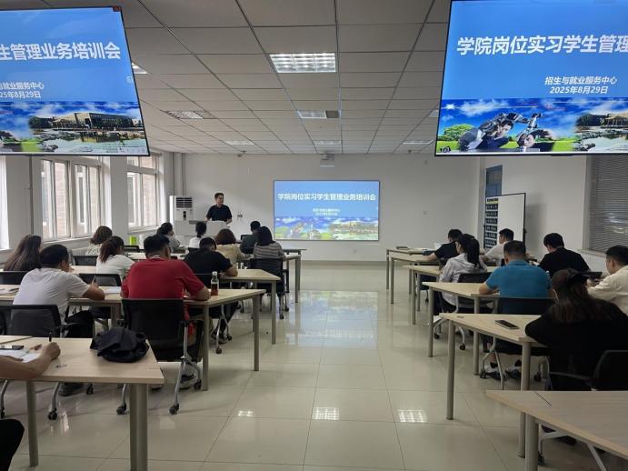 为全面提升岗位实习管理效能与人才培养质量,日前,学院组织召开岗位实习学生管理业务培训会。会议聚焦实习全过程规范管理、风险防控与信息化应用,对实习管理核心政策、典型问题及操作流程进行系统培训和部署。会议由招生与就业服务中心副主任王博主持。