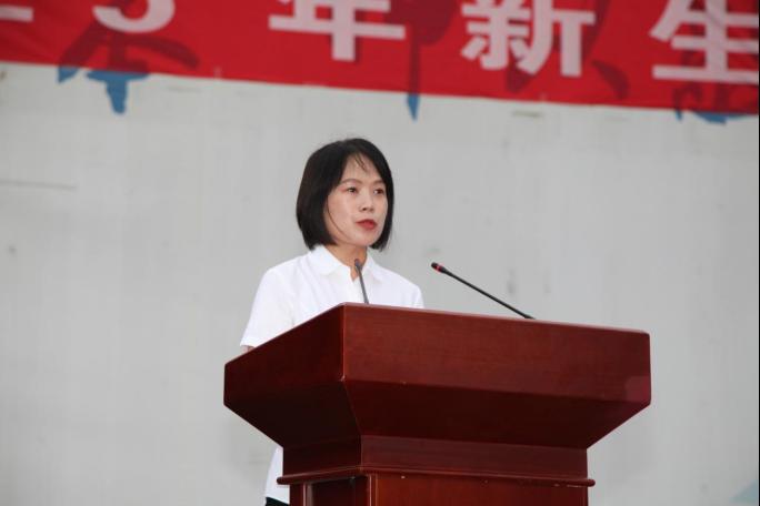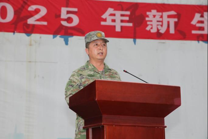 副院长徐晓英作开营动员讲话,她勉励新生以军训为契机,锤炼意志品质、强化纪律观念,将军人的优良作风融入未来学习生活,不负青春韶华与时代使命。