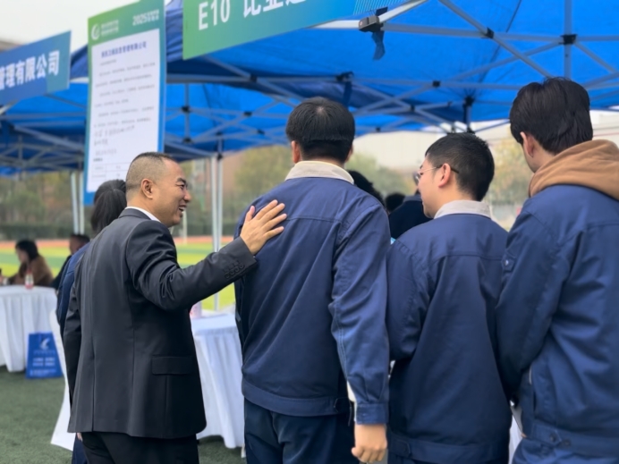 启动仪式后,双选活动在学院运动场全面铺开。本次双选会精准契合市场需求与学院育人定位,吸引90家优质企业参会,涵盖输配电设备制造、航空航天、材料工程、汽车、物业等重点行业,显示了市场对技能型人才的旺盛需求及对学院培养质量的高度认可。