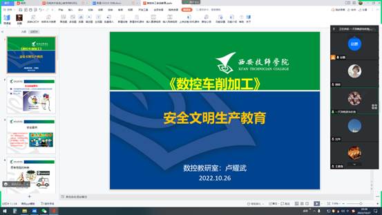 为进一步加强线上教学常规管理,提升教师线上教学能力,提高备课质量,保证课堂效果,充分发挥优秀教师的骨干示范作用,促进教师间的学习与交流,2022年10月27日至29日,机电技术系组织系部各专业带头人、技能带头人、课程负责人利用“腾讯会议”及“雨课堂”进行了线上教学资料评选和分享交流活动。