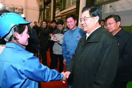 胡锦涛总书记视察西电集团与我院毕业学生亲切交谈