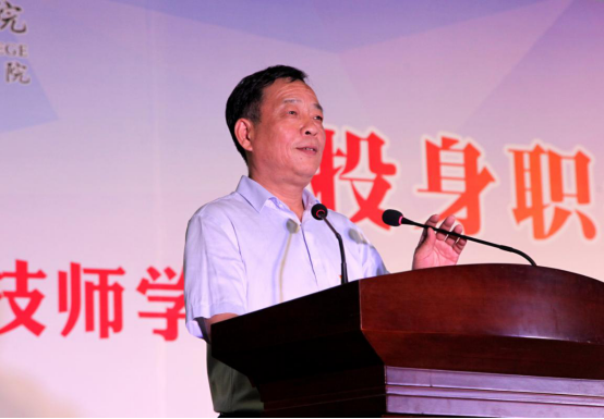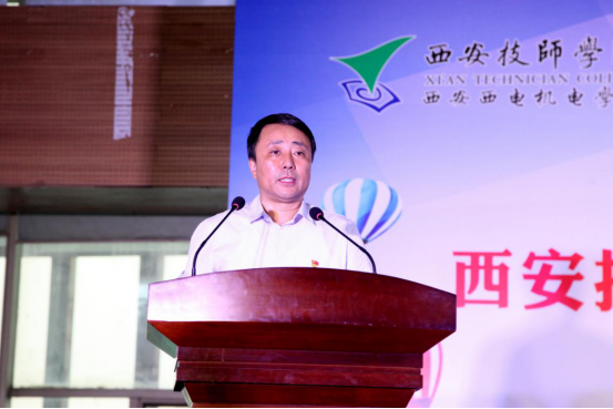 省人社厅副厅长井海滨发表讲话。他代表陕西省人社厅对长期以来为技工教育事业奋斗的广大教职工表示问候和感谢;对西安技师学院在陕西省技工教育发展中取得的成绩和做出的贡献予以肯定;对全省技工院校教师提出三点希望:第一,坚守初心,做勇担使命的合格教师;第二,坚守师德,做立德树人的灵魂工程师;第三,坚守本分,做潜心务教的优秀教书匠。