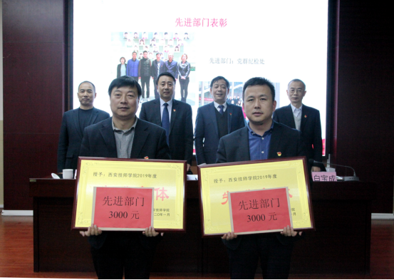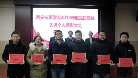 会上,学院副院长冯小平和总会计师白宝成同志分别宣读了十余项表彰决定和获奖名单。学院授予党群纪检处、培训中心2个部门为“先进部门”,机电技术系机电教研室等7个班组为“先进班组”,姚永乐、崔嵬等26人为“先进工作者”,余欣、严寒冰、樊龙等15人为“优秀教师”,王晓霞等6人为“优秀班主任”荣誉称号;学院工会授予后勤中心分会、现代服务系分会为“先进分会”,滑玲等9人为“优秀工会积极分子”。学院领导分别为受表彰的集体和个人颁发了奖牌、荣誉证书和奖金,对获得2019年度院长基金的集体和个人以及在2019年度各类技能大赛中获奖的选手和教练进行了表彰。