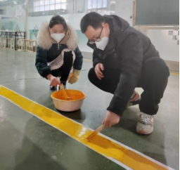因长期使用、原料自身损耗等因素,机电技术系部分实训车间地面标线破损、不清晰,在教学实训中易造成师生视线模糊、判断困难。为近一步提高实训车间的教学环境和场地规划标准,促进实习教学有序进行,提高师生实训期间的安全意识,2023年1月6日,机电技术系数控加工教研室全体教师按照寒假工作安排,对数控车间及机加车间的地面黄色安全警示分界线进行了重新涂刷。