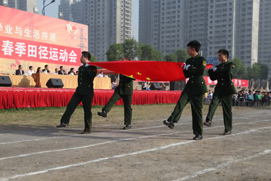 4月27日上午,春风和煦,伴随着嘹亮的运动员进行曲,西安技师学院第三届春季田径运动会在咸阳校区拉开了帷幕。运动会开幕式上,各系组成的表演方阵和运动员方队精神焕发、朝气蓬勃、口号响亮、信心百倍,踏着整齐有力的步伐走过主席台。国旗队、校旗队、彩旗队、军乐团的同学们意气风发,精神饱满地出现在大家面前。各系的方阵表演充分体现出学院学生的创新、青春和活力,他们的表演赢得了阵阵掌声,为运动会开幕式增添了亮点。