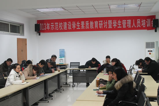 为进一步加强学生素质教育,全面提高学院办学水平和育人质量,2013年元月14日至15日,由学生工作处组织召开了“示范校建设学生素质教育暨学生管理工作研讨会”,学院领导、各系主任、学生管理人员、优秀班主任代表和学生处全体人员参加了会议。会议由学生工作处黄磊处长主持。