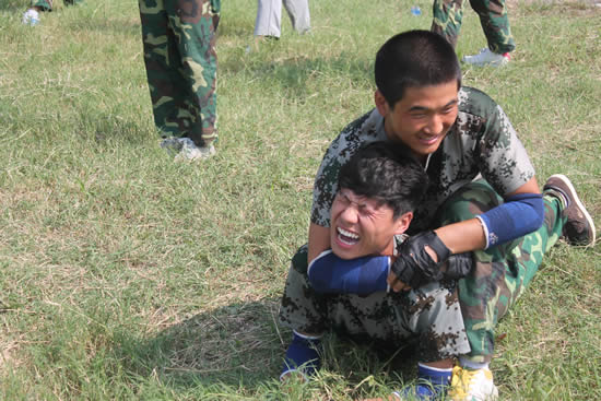同学们在努力适应这种极富规律的生活,期间一些让人哭笑不得的事情也时有发生。个别同学不会叠被子,整理内务的时候将被子团成球状,被子和枕头位置摆反;补训学生将自己的毛巾被也叠成了“豆腐块”,不能和别人在颜色上保持一致,也要尽力在形状上保持一致;遇到照相时,都想表现自己英雄的一面,参加格斗训练的同学中被压在地上的一位同学悄悄的说:“老师,你能不能等到我压他的时候再照呀?”