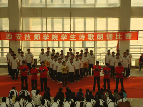 此次比赛从初赛到决赛,历时一个多月,参与的选手众多,经过初赛和复赛,走进决赛的共计19个参赛队。朗诵的诗歌内容丰富,有现当代名家的诗词,如徐志摩的《再别康桥》(中、英文版),同学们娓娓道来,将我们带入新月派诗歌美妙的意境中,感受诗人对往昔生活的憧憬,对眼前离愁淡淡忧伤;有歌颂祖国的诗句——王怀让的《我骄傲,我是中国人》;有催人奋进的《中华少年》,抑扬顿挫,充满激情;有饱含深情的《感恩父母》;也有朗诵者自作的诗歌《西安技师学院,梦想的殿堂》,咏诵出了我院师生的自豪感,朝气蓬勃。