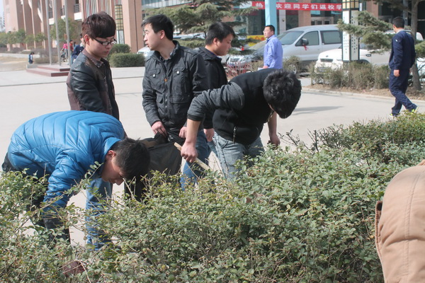 此次活动共有团委书记、党支部书记、系主任、各系团干部、党员、党团积极分子等200余人。在绿化校园活动过程中,各系青年志愿者充分发挥不怕苦、不怕累的精神,积极主动、分组进行,认真清扫校园绿化带中的白色垃圾和砖头瓦块,美化、整洁了校园环境。活动结束后,由学院团委学生会组成的宣传小分队的同学们将绿色宣传标语牌扎在校园各个绿化带。经过一番辛勤劳作,校园内外各个绿化带焕然一新。